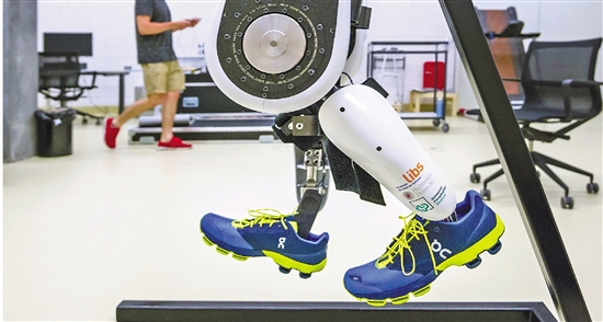 研究人员正在进行电动外骨骼实验。 视觉中国供图