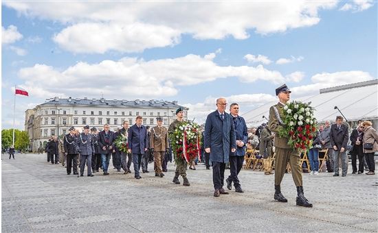 5月8日,人们在波兰首都华沙的无名烈士墓参加纪念活动。当日是第二次世界大战“欧洲胜利日”,华沙举行活动,纪念第二次世界大战欧洲战场胜利80周年。 新华社发
