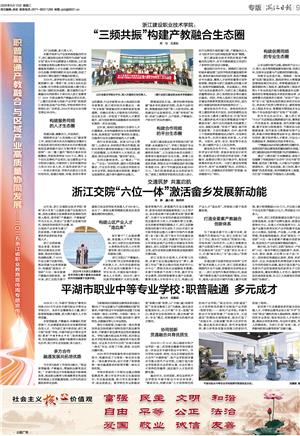 近年来,浙江交通职业技术学院(简称“浙江交院”)以服务交通产业发展为内核,找准支撑地方发展需求和发展特色的嵌入路径,坚持把“产教融行·产教融城”作为立足点,形成以“交通产业发展为依托、高校和科研院所为支撑、地方政府产业培育为着力”的新思路,不断培养高素质劳动者和技术技能人才。