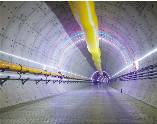 汾湖隧道内装上了施工灯带。 共享联盟·嘉善 郑之恒 摄