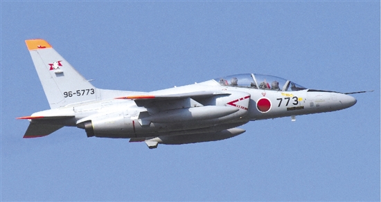 这是2017年9月8日在日本北海道拍摄的T-4型训练机。 新华社发