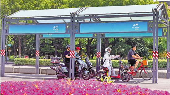 | 5月14日,杭州主城区最高气温攀升到34.2℃。烈日下,已安装到位的非机动车道遮阳棚为行人遮出一片清凉。据了解,杭州2025年非机动车道遮阳棚安装工作已经启动,预计5月底前全部安装到位。图为环城北路上的非机动车道遮阳棚。 本报记者 林云龙 摄 |