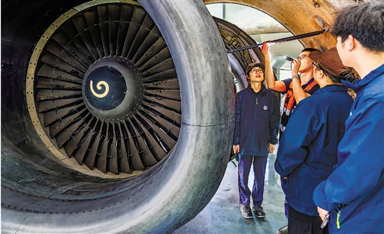 5月14日,在金华职业技术大学产教园内,该校航空工程学院飞机机电设备维修专业学生正进行维修直升机、喷气机发动机零部件等实操课程作业。自2020年该专业开设以来,中国商飞上海飞机制造有限公司、春秋航空股份有限公司等多家公司每年都会提前来学校招人。目前,该专业(专升本除外)的毕业生连续三年就业率达100%。 本报记者 金思成 通讯员 陈业 陈佳琦 文/摄