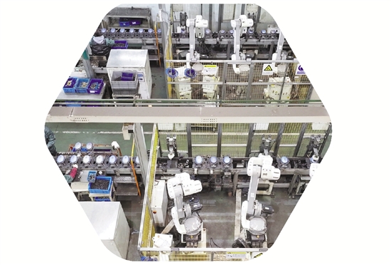 加西贝拉压缩机有限公司工厂内,自动机械臂挥舞。