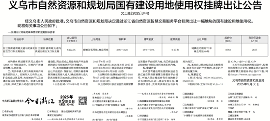 义乌市自然资源和规划局国有建设用地使用权挂牌出让公告