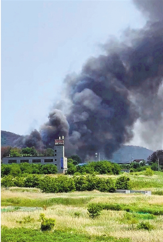 图为5月29日拍摄的韩国浦项坠机事故现场的浓烟。