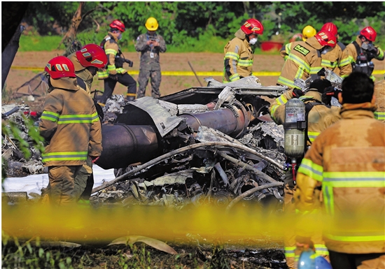 图为5月29日,救援人员在韩国浦项的事故现场进行搜救。 新华社发
