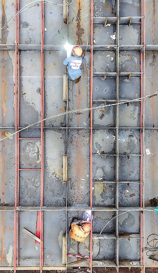近日,临海市一家船企,工人在修造船舶。 视觉中国供图