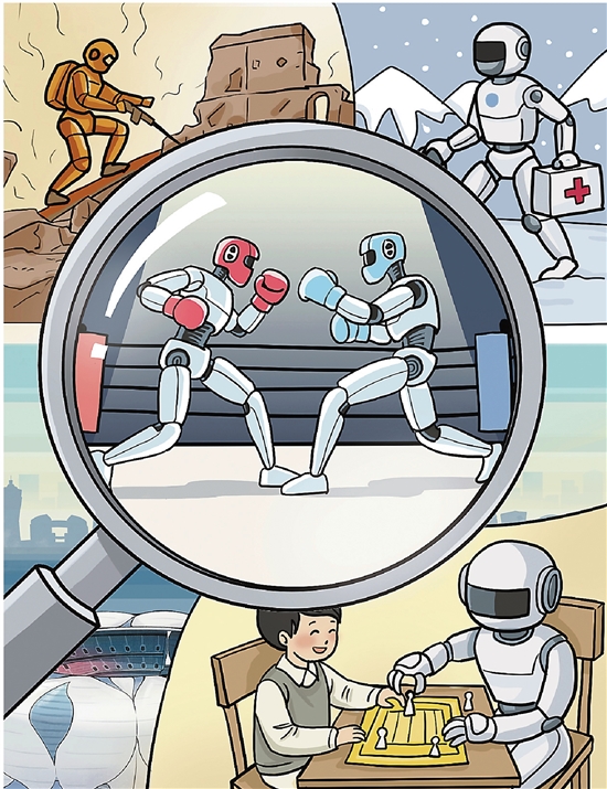 | 机器人刚挑战完马拉松又来格斗了!近日,全球首个人形机器人格斗大赛在杭州举行。机器人要上台格斗,必须软硬件均达最佳状态。经过大量测试和矫正才能诞生顶尖“格斗手”。人形机器人潜力巨大,浙江正前瞻布局和加快推动人形机器人产业创新发展。 金妍 陈昱志 作 |