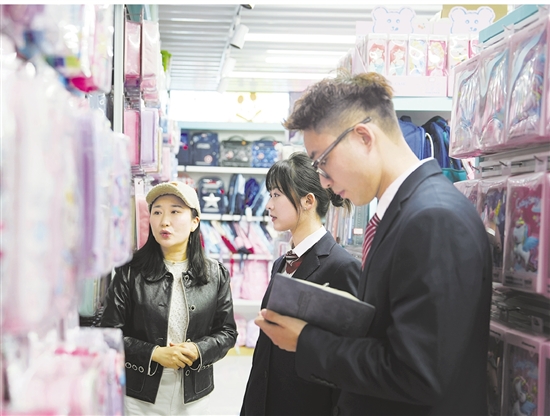 稠州银行客户经理走访调研义乌国际商贸城外贸商户。