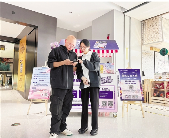 工行义乌分行工作人员在义乌天地驻点,为来往客户办理信用卡。 (图片由工行义乌分行提供)