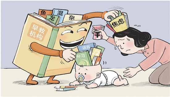 近日,《人民日报》报道,早教市场存在机构鱼龙混杂现象,监管尚有空白。一些机构打着“几天改变孩子”“彻底开发潜能”的旗号推销产品,同时利用营销话术向家长贩卖焦虑。事实上,父母高质量的陪伴才是婴幼儿成长的关键。家长应学会辨别早教产品,对夸大宣传保持警惕,而相关部门也需加强监管,规范市场秩序。 林琳 朱潋 作 |