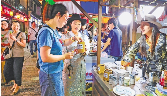 | 6月4日,金华市婺城区与四川省甘孜藏族自治州道孚县“共叙山海情·婺道一家亲”民族文化交流活动在婺州古城景区举行。自2021年结对以来,两地通过产业合作、教育扶智、医疗帮扶等途径深化对口支援。 本报记者 潘秋亚 通讯员 时补法 文/摄 |