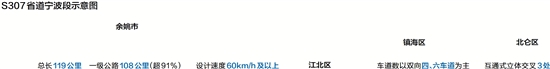 总长119公里 一级公路108公里(超91%) 设计速度60km/h及以上