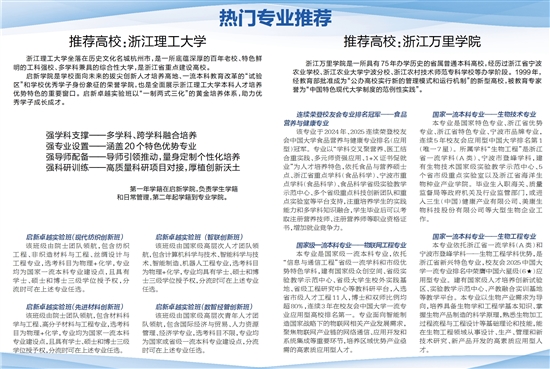 该专业于2024年、2025连续荣登校友会中国大学食品营养与健康专业排名(应用型)冠军。专业以“学科交叉聚营养、医工结合重实践、多元师资强应用、1+X证书促就业”为人才培养特色,依托食品与营养硕士点、浙江省重点学科(食品科学)、宁波市重点学科(食品科学)、食品科学省级实验教学示范中心、多个省级重点科技创新团队和重点实验室等平台支持,注重培养学生的实践能力和多学科知识融合,学生毕业后可以考取注册营养技师、注册营养师等职业资格证书,增加就业竞争力。