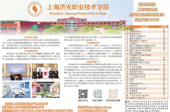 上海济光职业技术学院是1993年经上海市人民政府批准成立,2001年纳入全国普通高等教育统一招生计划的全日制普通高等院校。学校源于同济、校长来自同济、师资主引同济、办学依托同济,教学管理秉承同济大学严谨求实的优良传统。
