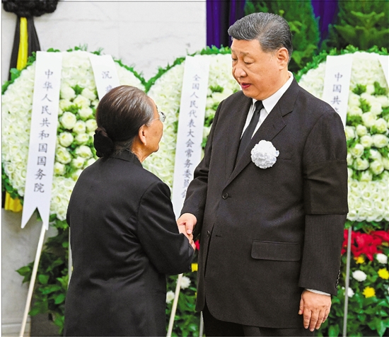 6月12日,热地同志遗体在北京八宝山革命公墓火化。习近平、李强、赵乐际、王沪宁、蔡奇、丁薛祥、李希等前往八宝山送别。这是习近平与热地亲属握手,表示深切慰问。