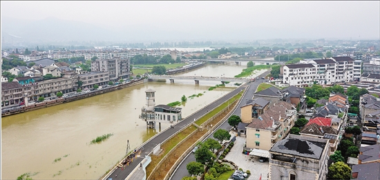俯瞰西险大塘。 本报记者 曹坚 摄