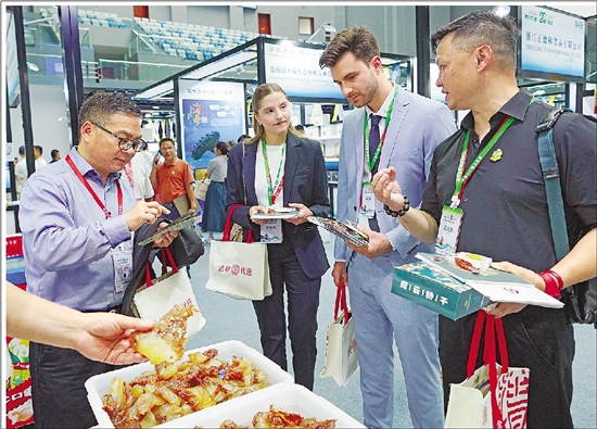 在青田农遗20周年暨优质农产品出口推介活动现场,外商正在咨询农产品信息。 共享联盟·青田 徐俊 摄