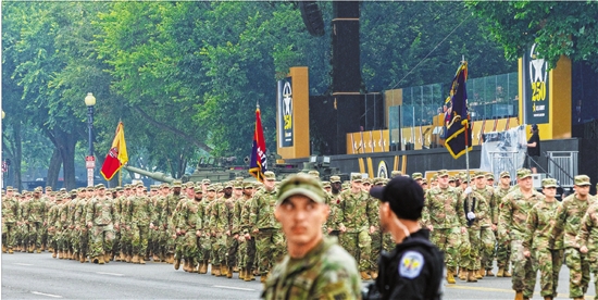 这是6月14日在美国首都华盛顿拍摄的阅兵式。 新华社记者 胡友松 摄