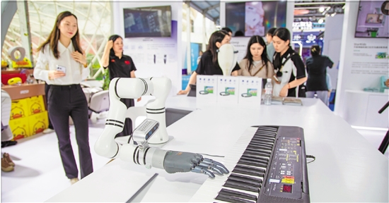 第四届数据安全发展大会日前在温州举行,会上仿生手弹奏电子琴。 共享联盟·瓯海 王斌 摄