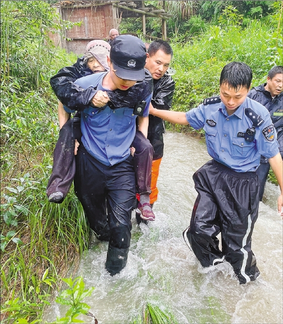 6月15日,开化民警、村干部组成救援队营救九旬遇险老人。
