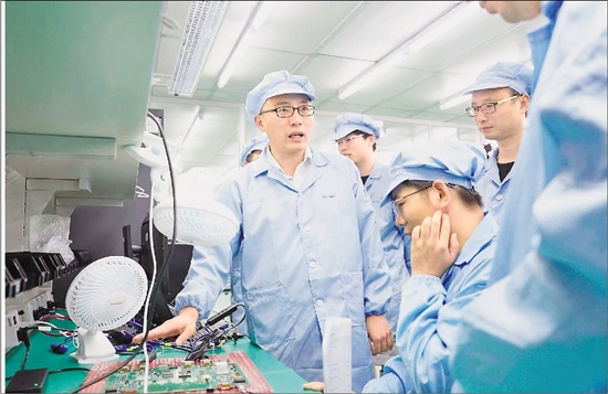 李超(左一)指导团队进行技术攻关。 之江实验室供图