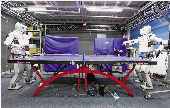 “悟”、“空”仿人机器人进行乒乓球对打。 受访者供图
