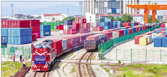 | 6月17日,一列满载100个标箱日用商品的X9216次中欧班列,从铁路义乌西站鸣笛启程,驶向哈萨克斯坦阿拉木图。在这趟班列的日用商品中,还混装着一批锂电池电钻、电锯等消费型锂电池产品。混装模式的创新,使班列货物配载更为灵活,更好地契合中小型外贸企业的个性化需求。 本报记者 叶振宇 共享联盟·义乌 陈聪 吕斌 文/摄 |
