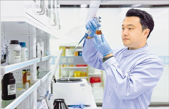 王思佳正在进行莫干黄芽活性挥发油提取项目实验。 受访者供图
