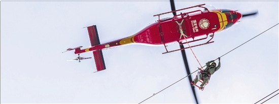 | 6月19日,温州市瓯海区潘桥街道东边村山峦间,一架双发轻型直升机在高空悬停——国网温州供电公司正运用直升机吊索吊椅法,对220千伏瓯湖线开展高压线路光缆断股修补。该线路作为主供温州城区的省属电力“主动脉”,承担着保障城市核心区域供电的重任。据悉,这是温州地区首次利用直升机对高压输电线路进行检修作业,较传统爬塔作业耗时缩短60%。 通讯员 张健 包紫祎 本报记者 张银燕 文/摄 |
