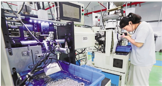 | 6月23日,在温州市泰顺县彭溪镇的浙江骐盛电子有限公司生产车间,200余台自动化设备正高速运转,加紧生产电子元器件。产品广泛应用于航空航海、医疗、新能源、人工智能等领域,订单已排到7月中旬。 本报记者 林云龙 通讯员 赖淼莲 摄 |