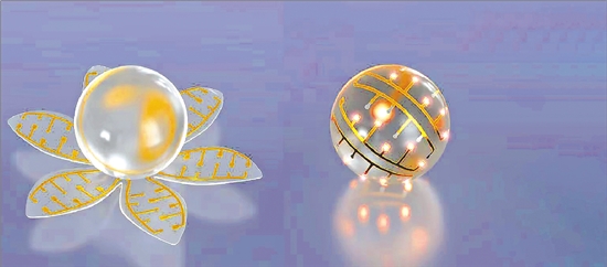 应用在柔性电子皮肤的三维曲面传感器件,可与机器人指尖、球体等各类曲面共形。 浙江清华柔性电子技术研究院供图