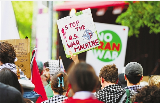 6月22日,民众在荷兰海牙参加反北约集会。 新华社记者 赵丁喆 摄