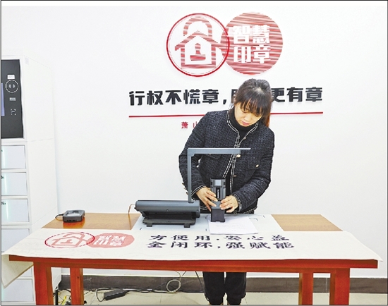 戴村镇工作人员通过“智慧印章”管理系统,根据群众诉求,申请使用盖章。