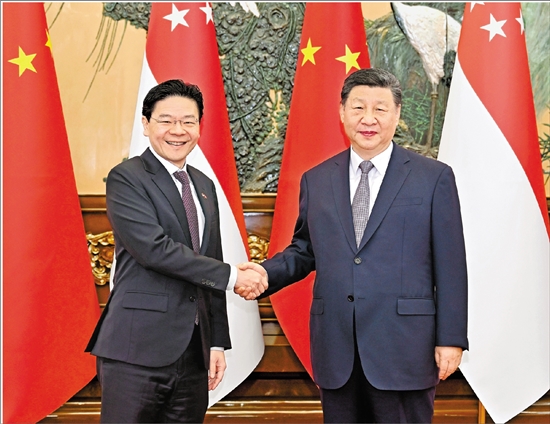 6月24日上午,国家主席习近平在北京人民大会堂会见来华进行正式访问的新加坡总理黄循财。 新华社记者 岳月伟 摄