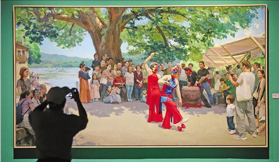 7月9日,观众在浙江展览馆参观“文润之江——‘新时代 新征程’浙江重大题材美术精品创作工程作品展览”。展览聚焦浙江文化建设“八项工程”实施20年来的创新实践与丰硕成果,以“蓝图引航”“光华霞举”“逐梦征程”3个篇章为脉络,通过绘画艺术铺展时代画卷。从文化传承的守正创新到社会发展的日新月异,观众在艺术熏陶中深切感受浙江20年来的奋进足迹与文化魅力。