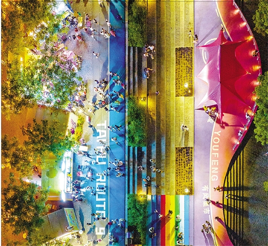 盛夏的夜晚,长兴太湖9号公路太湖有风青年集市灯火璀璨,不少市民来此游夜市、逛商铺。