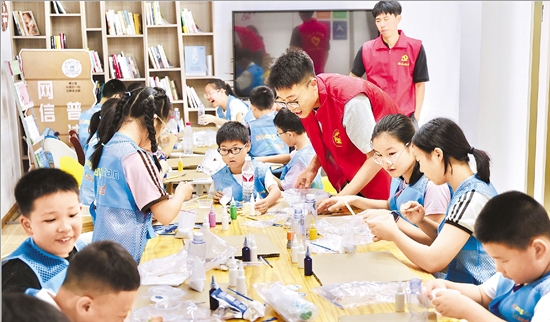 清华大学博士生刘明(中间红衣者)面向嵊泗县嵊山岛、枸杞岛的18名小学生,开展以“海钓文化”为主题的研学活动。 受访者供图