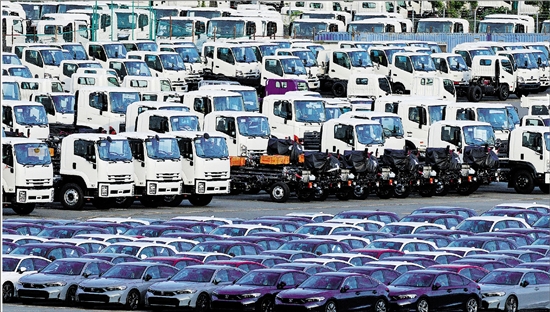 图为7月3日在日本横滨一处港口拍摄的待售车辆。 新华社记者 贾浩成 摄