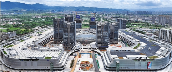 7月23日,义乌市第六代市场核心标志项目——全球数贸中心。目前,中心市场板块已完成竣工验收,计划10月开门迎客。全球数贸中心项目占地562亩、总建筑面积125万平方米,将打造集聚众多新业态新模式贸易主体和供应链服务主体的新型数字市场。 本报记者 叶振宇 何贤君 通讯员 吕斌 文/摄 |