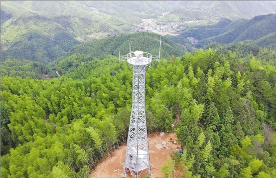 位于龙泉五龙山上的水利测雨雷达。 通讯员 叶军 摄