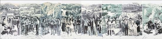 文润之江——“新时代 新征程”浙江重大题材美术精品创作工程作品展览参展作品之一,版画《文化兴邦——八项工程》。 鲁利锋 初艳淼 王克景 孔国桥