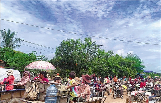 这是7月24日拍摄的柬埔寨奥多棉吉省边境地区正在撤离的民众。 新华社发(帕尔林摄)