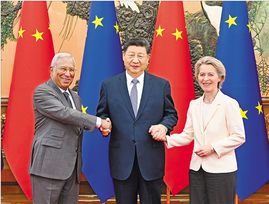7月24日上午,国家主席习近平在北京人民大会堂会见来华举行第二十五次中国—欧盟领导人会晤的欧洲理事会主席科斯塔和欧盟委员会主席冯德莱恩。 新华社记者 谢环驰 摄