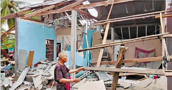 这是7月25日在泰国乌汶府拍摄的在冲突中受损的民居。 新华社发