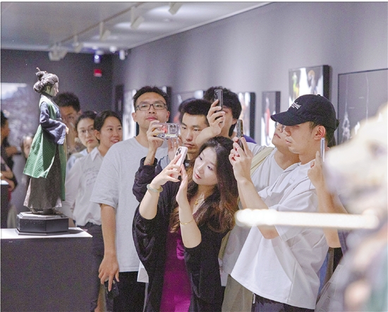 7月25日,观众在“黑神话:悟空”主题艺术展上欣赏游戏角色模型雕塑和游戏歌曲现场演唱。 本报记者 倪雁强 摄