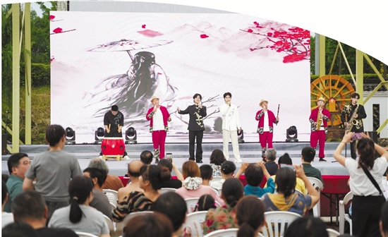 三都“草帽乐队”与00后学生合作演出歌曲串烧。