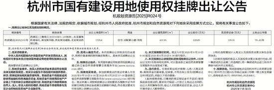 杭州市国有建设用地使用权挂牌出让公告