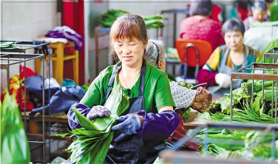 | 7月30日,在遂昌县浙南箬叶市场内,工人正忙着分拣箬叶。近年来,遂昌县通过协会运作、统一市场、线上交易等模式,实现箬叶从采摘、加工到收购的全链条全周期管理。据悉,2024年遂昌县箬叶干叶产量达3600吨,产值超亿元。 本报记者 胡元勇 魏志阳 通讯员 朱敏 章建辉 摄 |